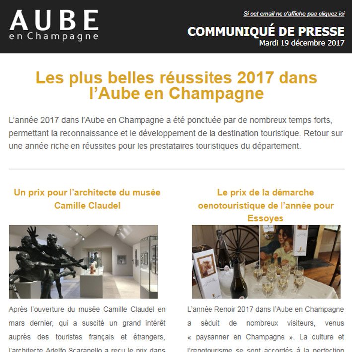 L’année 2017 dans l’Aube en Champagne a été ponctuée par de nombreux temps forts, permettant la reconnaissance et le développement de la destination touristique. Retour sur une année riche en réussites pour les prestataires touristiques du département.